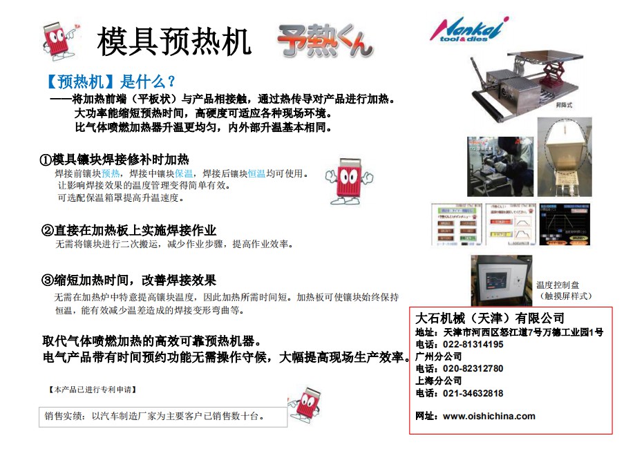 郵箱:kent@oishi-machine.com大石機(jī)械(天津)有限公司是日本大石機(jī)械株式會(huì)社在中國的全資子公司。公司成立于2004年7月,并于2007年在廣州、上海、武漢成立分公司。